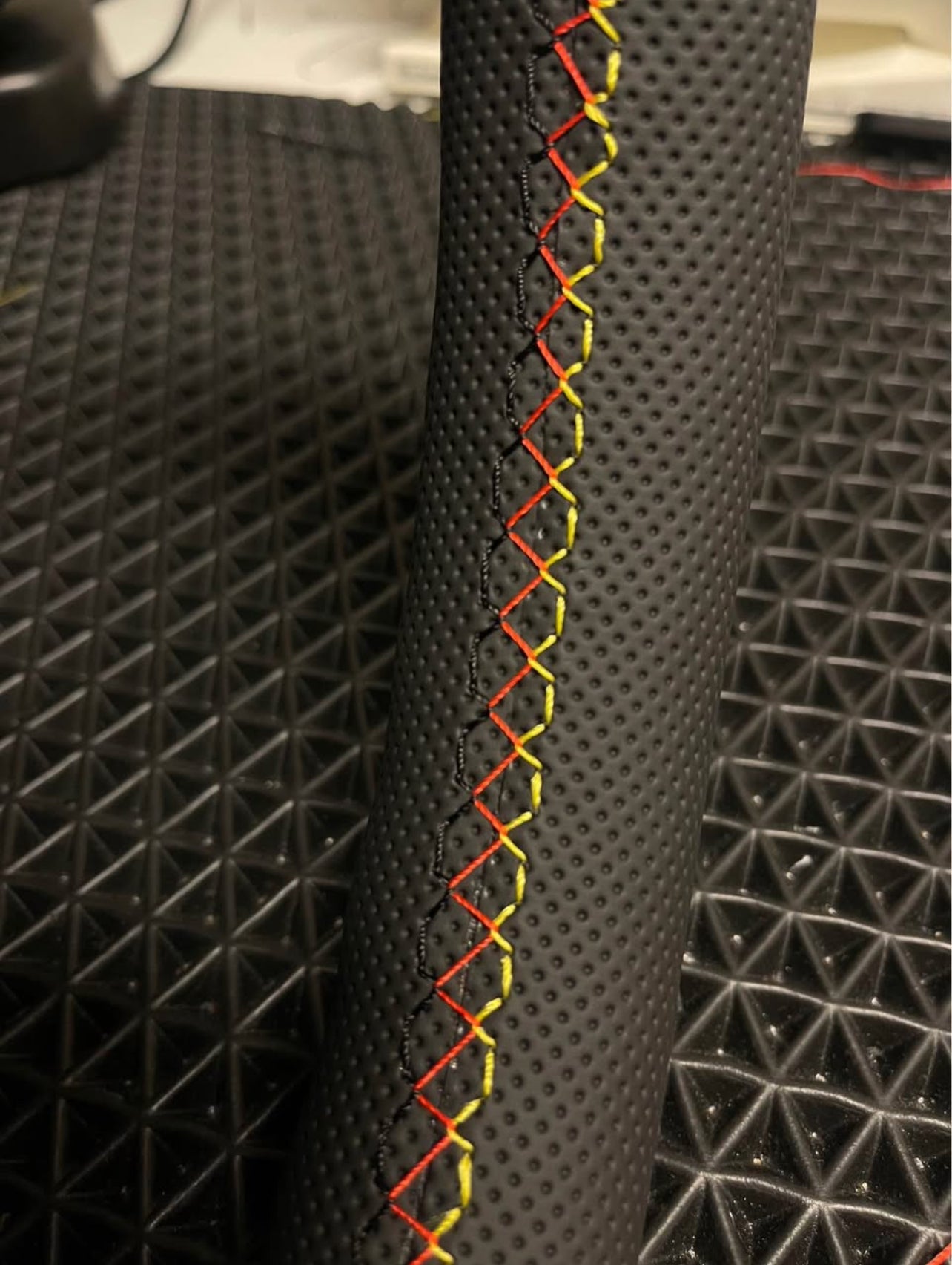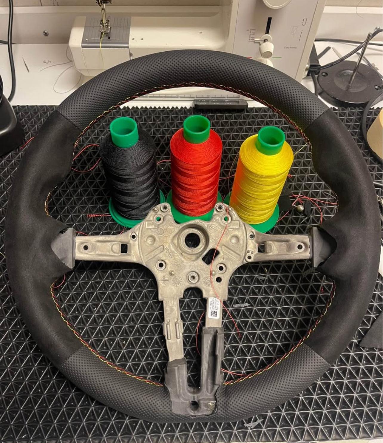 BMM M-Ratt F-Serien, helt omsydd i alcantara på sidorna och perforerad läder upptill och nertill med Tysklands färgerna på sömmarna